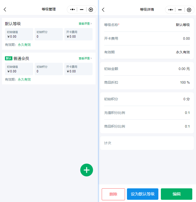 3.更新等级管理、查看、新增、编辑、删除、设为默认等级