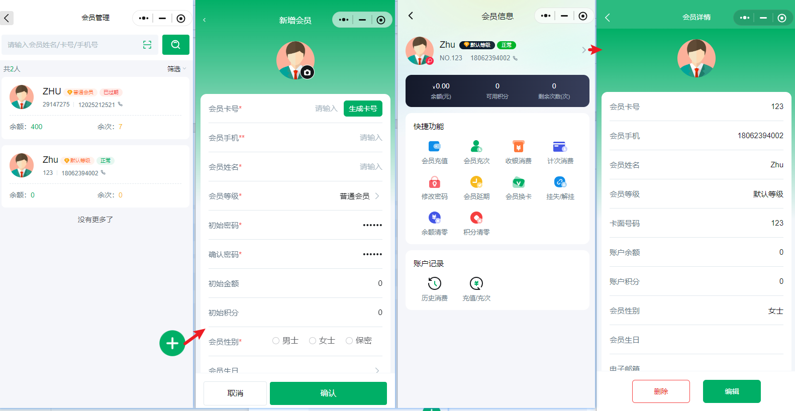 4.更新会员信息页相关业务操作功能、会员信息页账户记录与优化了新增会员页