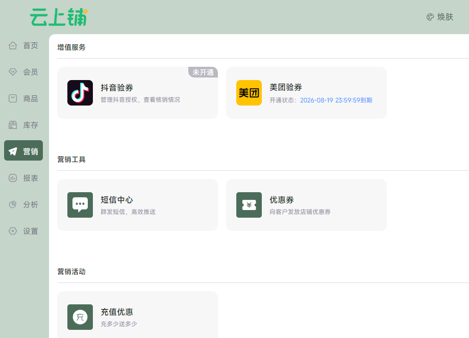 现在就来体验云上铺系统吧!我们的专业团队将为您提供一对一的服务,帮助您快速上手,让数字化营销变得简单高效。无论是新店开业还是老店升级,云上铺都能为您量身定制最适合的解决方案!