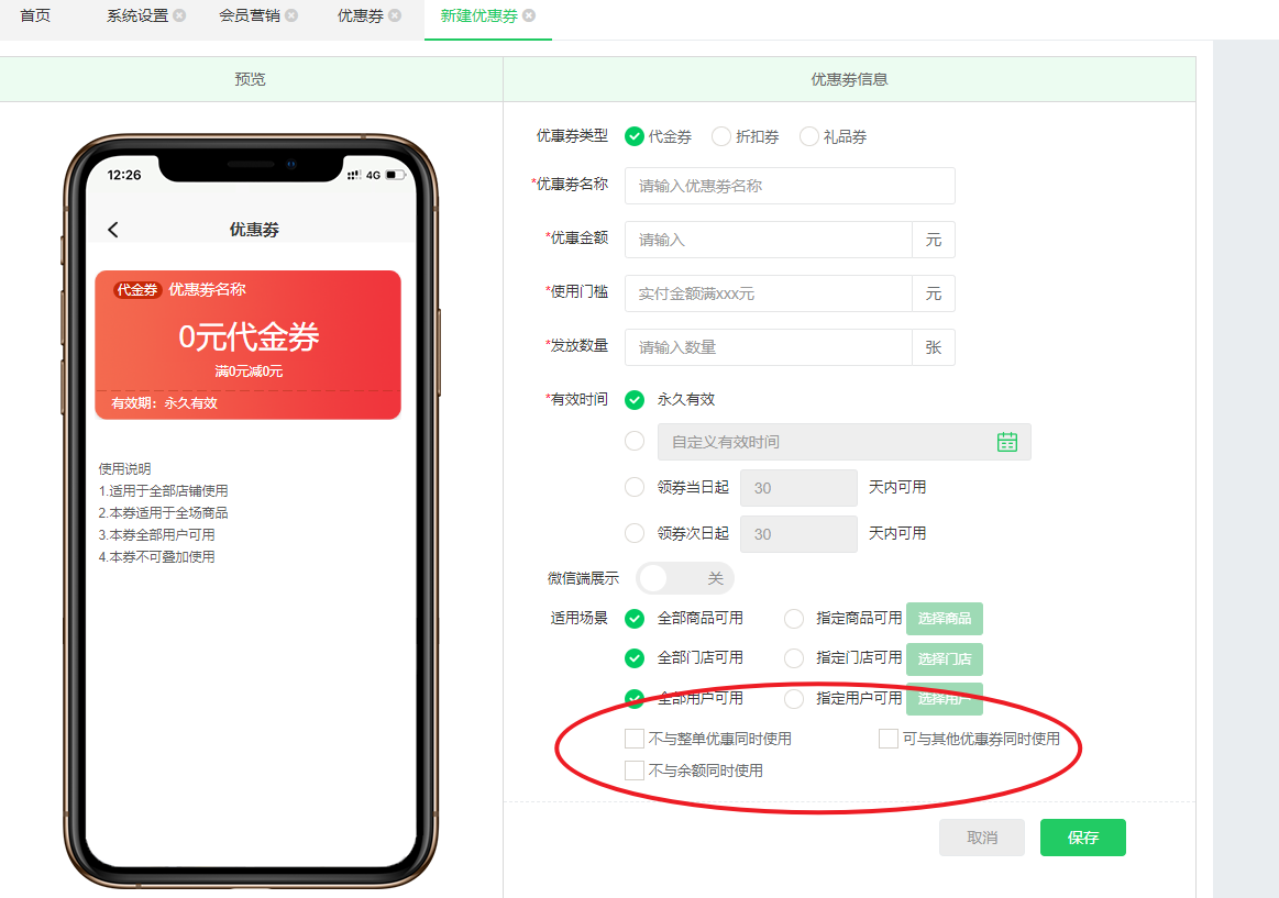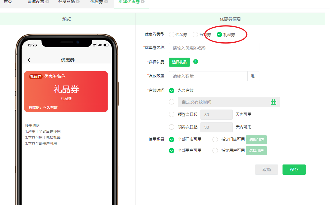 5.3. 优惠券增加【礼品券】,创建发送至会员账户后,卡券核销