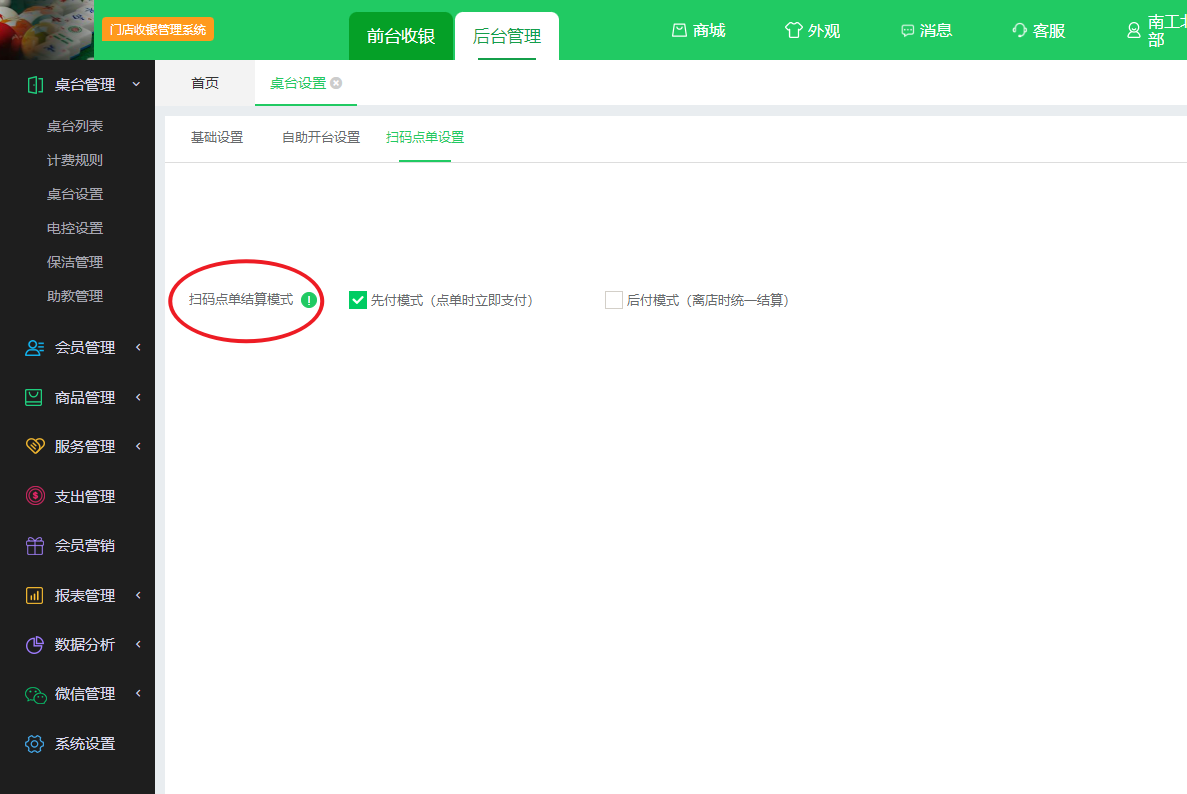 商家设置完成后 → 开台 → 顾客扫桌台码点单 → 根据先付/后付模式结账