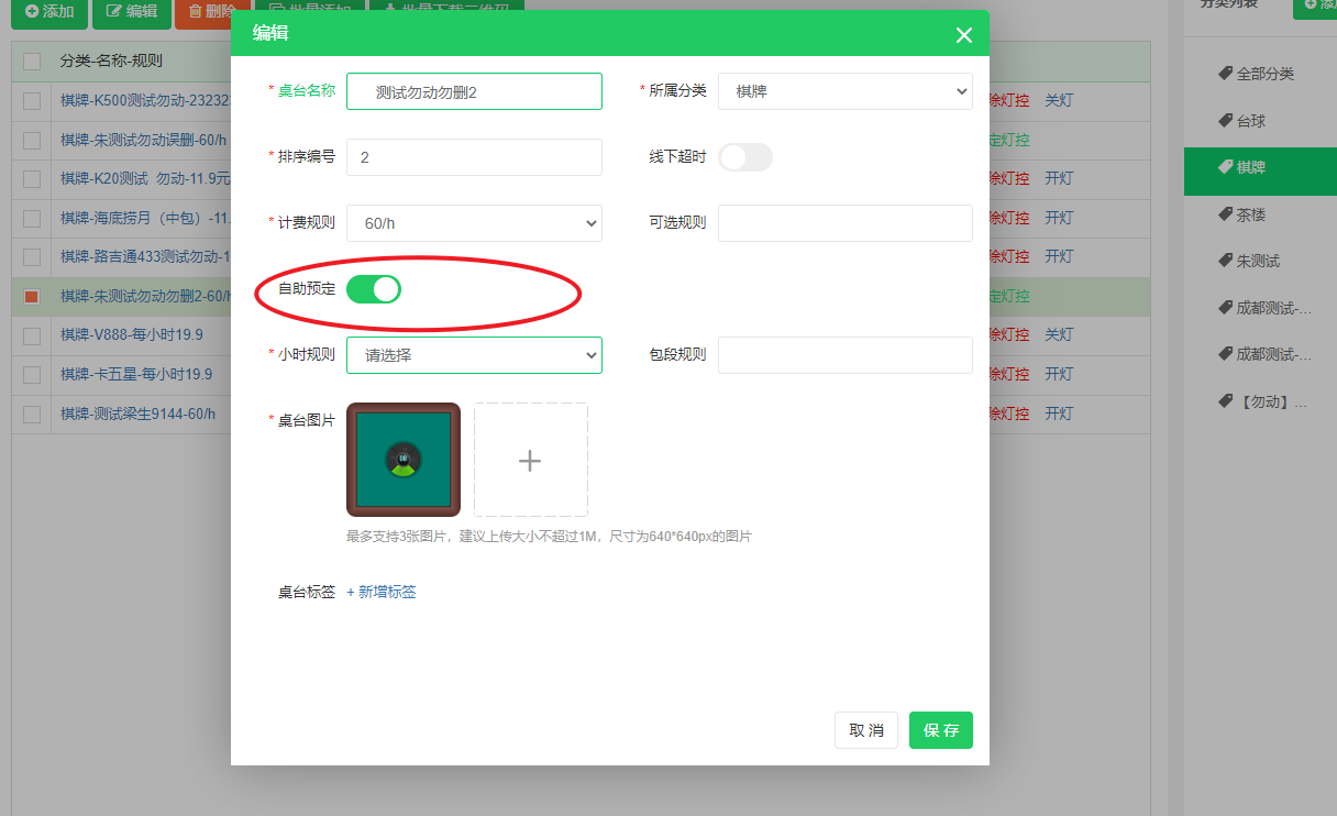 设置扫码点单结算模式 → 商品参与线上售卖 → 目标棋牌类桌台开启线上预定