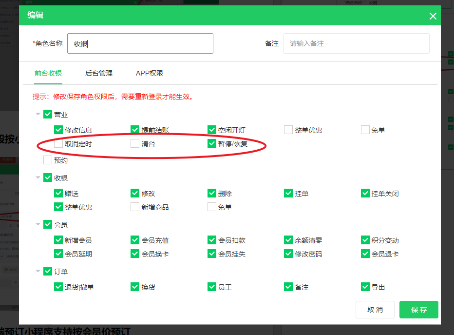 1.4. 棋牌增加权限(清台、恢复/暂停)