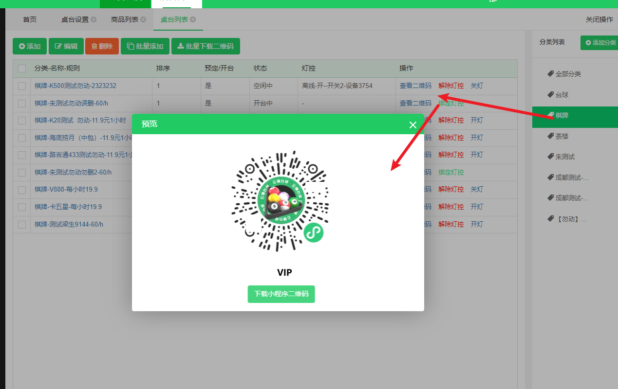 1.1. 增加棋牌类型桌台【扫码点单】业务功能