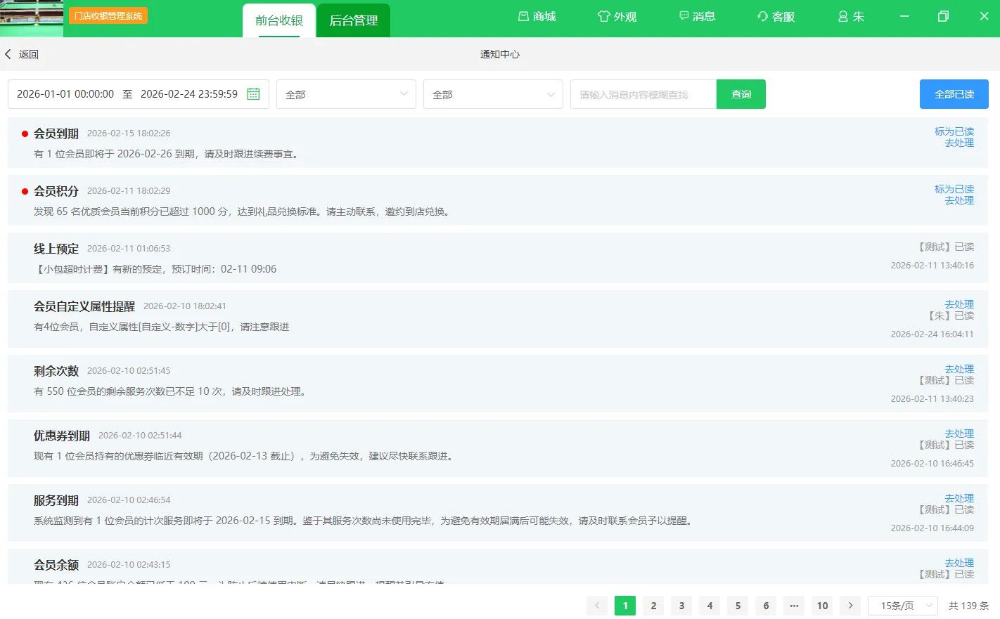 - 增加未读消息总数提示,支持按时间、类型、状态与内容搜索。